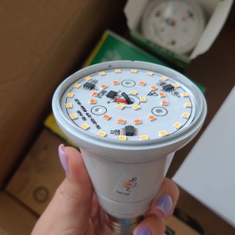 فناوری فول اسپکتروم این چراغ، ترکیبی از نور طبیعی و بنفش را ارائه میدهد که باعث تحریک فتوسنتز، رشد سالم و افزایش بازدهی گیاهان میشود. این طیف نوری، از مراحل جوانهزنی تا گلدهی و میوهدهی، نیازهای گیاه را بهخوبی تأمین میکند.